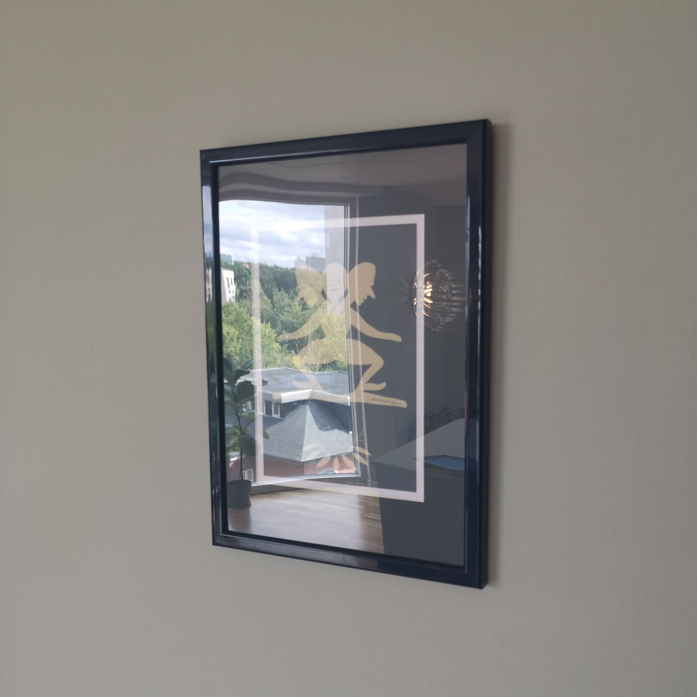 Der Glanz ist etwas mattierter und gebogener. Bei biegsamen Acrylgläsern sind möglicherweise Klebeband auf der Rückplatte und Holzstreifen für Holzrahmen erforderlich, die größer als A0-Rahmen sind. Andernfalls kann es unter Umständen dazu kommen, dass sich das Acrylglas leicht aus dem Rahmen verbiegt.