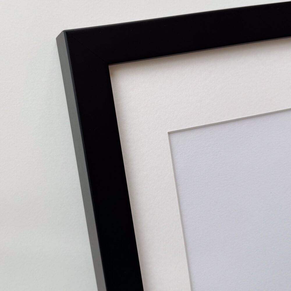 Mattschwarzer Holzrahmen zum Einrahmen Ihres A1-Posters - oder kleiner, wenn Sie Passepartout kaufen oder das Bild auf das säurefreie Einlegepapier legen.